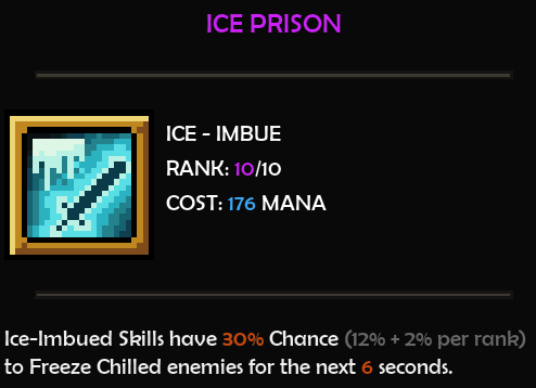 If we got all seven Ancestral Stones available i would change Ice Prison to Light Wave. Icy Prison was choose to interrupt attacks, but it has just a 30% to trigger and breaks instantly, because of our amount of hits we do. Light Wave blinds enemies in aoe and for a longer duration.