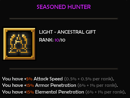 It’s “free” ele res, since no other passiv on those lines are great for us. (You can drop the 25% ele dmg buff for “From bones to Ballista” if you want too, more on Perks and Passives)