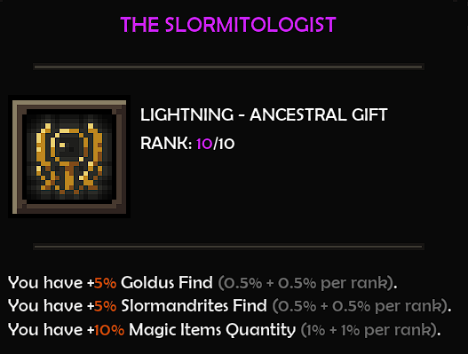 You can also take The Slormitologist, slormandrite and gold find are always good.