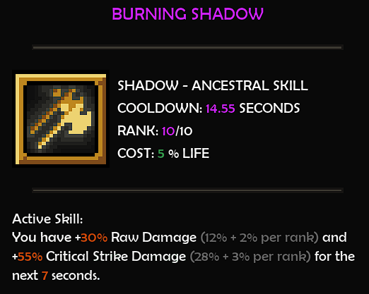 Burning Shadow is good against elite mobs, 30% raw dmg is always good.